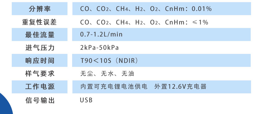 CO/CO2/H2/O2/CH4:0-100%;CnHm:0-10%; O2:0-25% |