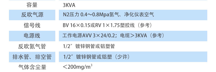 N2壓力 0.4~0.8Mpa氮氣、凈化儀表空氣 |