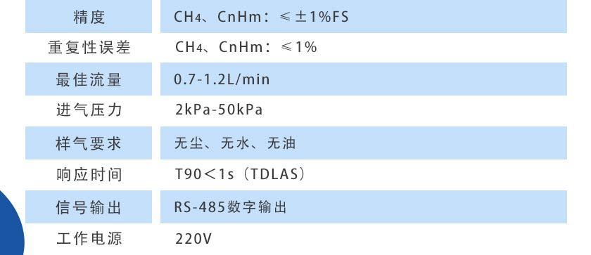 CH4、CnHm:≤±1%FS |